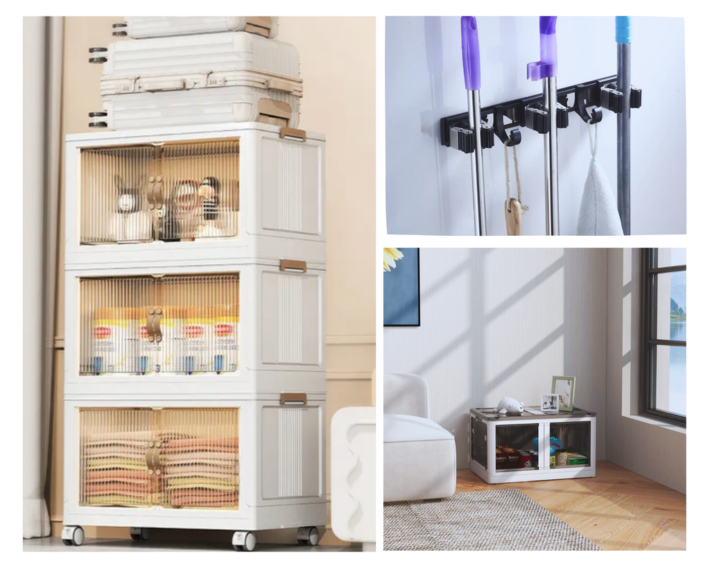 StackSmart™ Foldable Rolling Storage Bins – 3 Piece Stackable Set